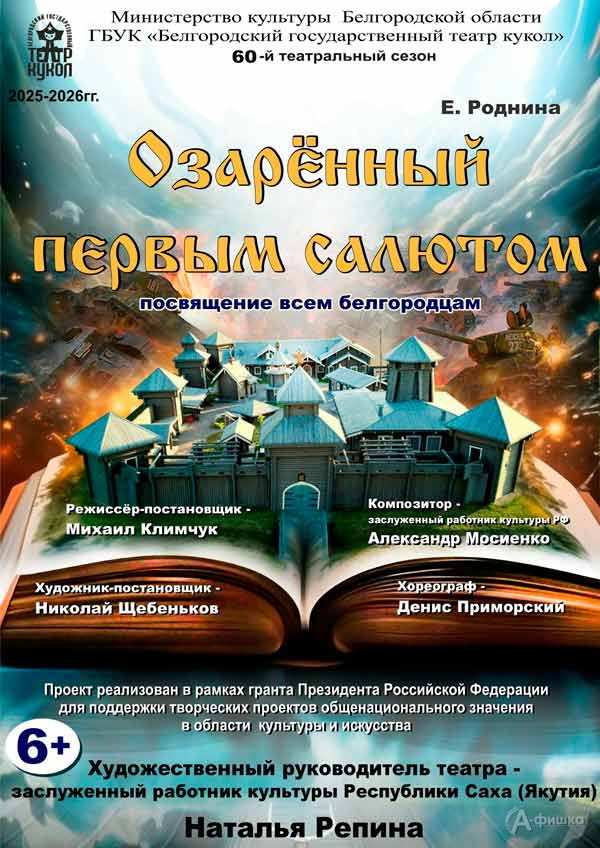 Белгородский государственный театр кукол приглашает зрителей в возрасте от 6 лет и их родителей на спектакль «Озарённый первым салютом», посвящённый Белгороду и жителям Белгородчины.