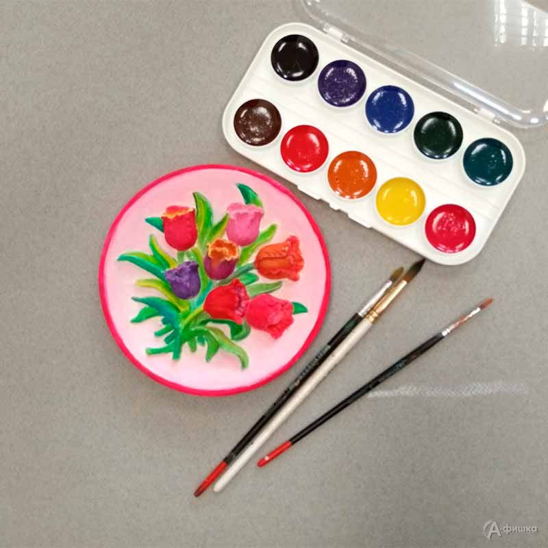 В рамках мастер-класса «Букет тюльпанов» участники детской творческой студии распишут гипсовое панно с изображением этих цветов. В качестве художественного материала будут использоваться акварельные краски, с помощью которых композиция получится не только яркой, но и воздушной.