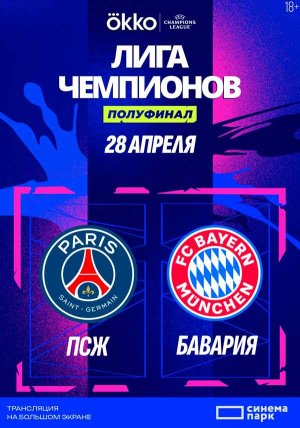 28 апреля 2026 года Сеть кинотеатров «Синема Парк» и «Формула Кино» приглашает на прямую трансляцию первого матча ½ финала плей-офф Лиги чемпионов УЕФА между командами «ПСЖ» и «Бавария».