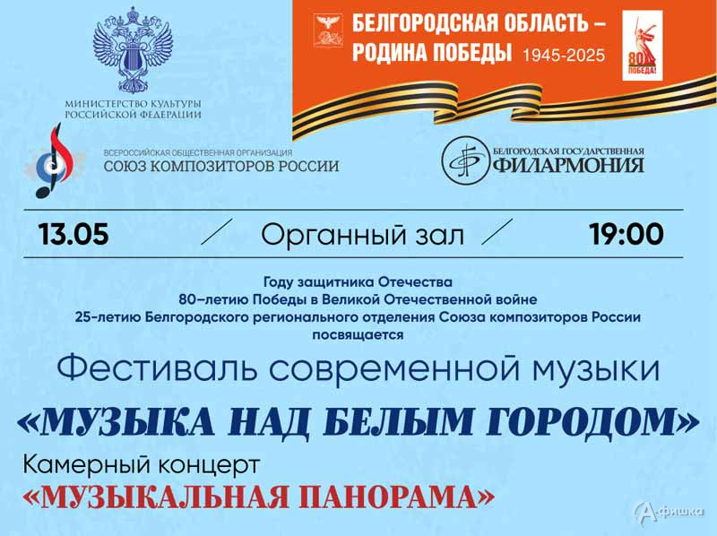 13 мая 2025 года Белгородская государственная филармония приглашает на камерный концерт «Музыкальная панорама» в рамках Фестиваля современной музыки «Музыка над Белым городом».