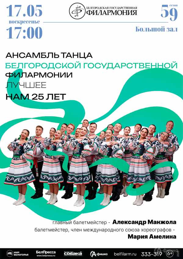 17 мая 2026 года Белгородская государственная филармония приглашает на повтор концерта «Ансамбль танца. Лучшее» к 25-летию коллектива.