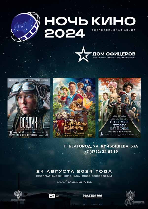 24 августа 2024 года Дом офицеров приглашает белгородцев на IX Всероссийскую акцию «Ночь кино» в креативном пространстве «Квартира».