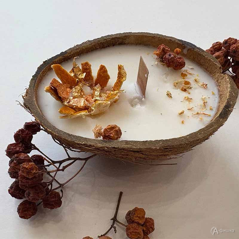 Участники познакомятся с техникой создания оригинальной свечи из натуральных материалов и под руководством опытного мастера создадут тропическую ароматическую свечу в основе из кокосовой скорлупы.