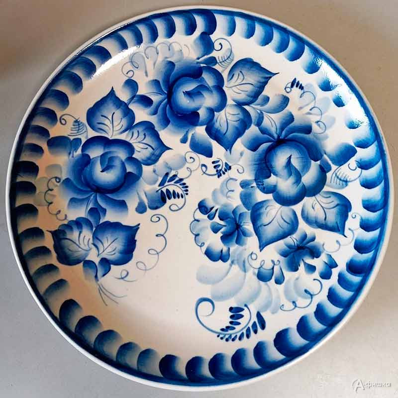 Гости занятия создадут авторскую тарелку по мотивам русского народного промысла «гжель», с использованием тематического рисунка и дополнительного декора.