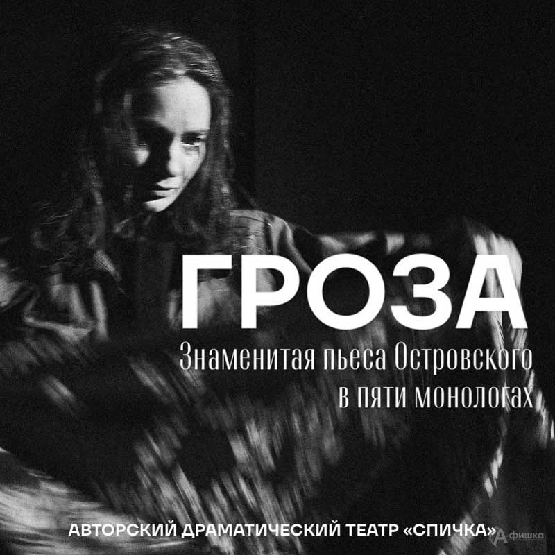 Театр «Спичка» приглашает зрителей на спектакль «Гроза» по классическому произведению великого русского драматурга Александра Островского в нехрестоматийном прочтении молодёжного театра.