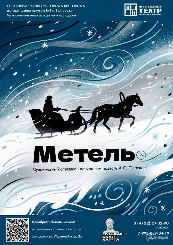 Музыкальный театр для детей и молодёжи представляет спектакль с оркестром «Метель» по мотивам одноимённой повести Александра Пушкина в инсценировке Андрея Зотова.