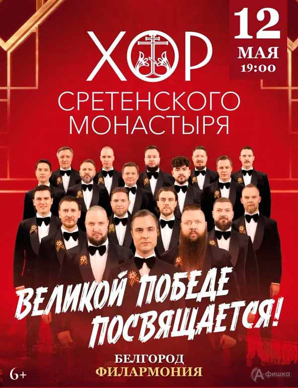 12 мая 2026 года в Белгороде с новой концертной программой «Великой Победе посвящается» выступает Хор Сретенского монастыря.