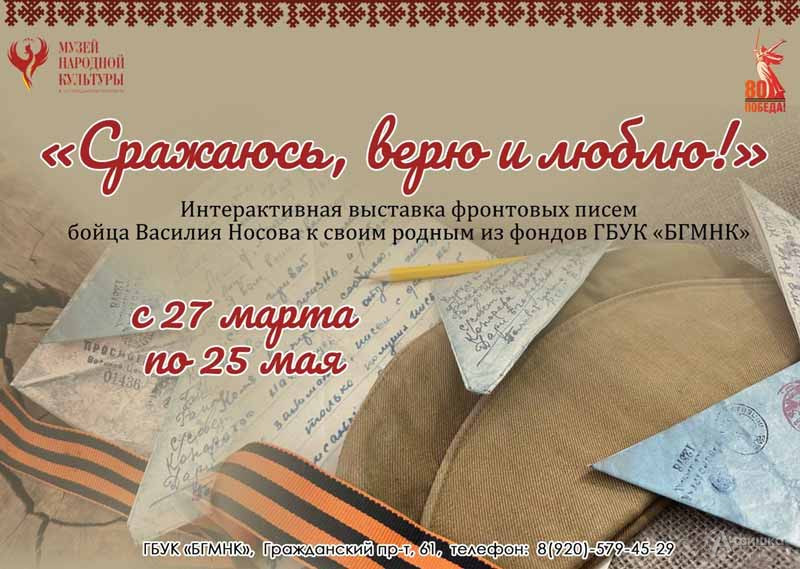 С 27 марта 2025 года в Белгородском государственном музее народной культуры работает интерактивная выставка «Сражаюсь, верю и люблю!», экспозицию которой составляют фронтовые письма бойца Василия Носова к своим родным из фондов музея.