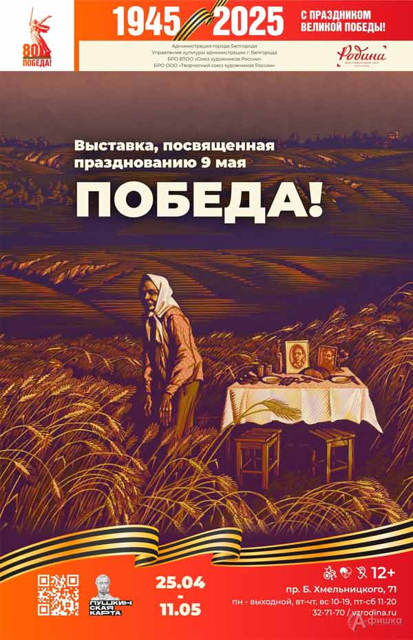 С 25 апреля 2025 года в Выставочном зале «Родина» работает художественная выставка «Победа!», посвящённая празднованию 9 мая.