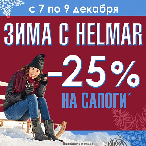 С 7 по 9 декабря 2018 г. в магазинах обуви и аксессуаров «Helmar» проходит акция «Зима с Helmar» – скидка 25% на сапоги!