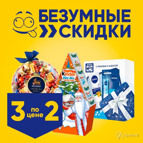 «Безумные скидки» в гипермаркетах «Лента» в Белгороде продолжаются – 7 и 8 декабря 2018 г. «3 по цене 2»
