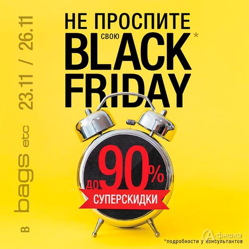С 23 по 26 ноября 2018 г. в магазинах сумок и аксессуаров «Bags etc» в Белгороде не проспите свою «Чёрную пятницу» – скидки до 90%!