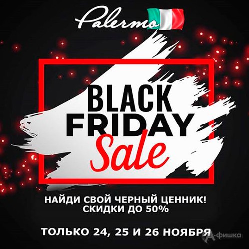 В сети бутиков итальянской обуви, одежды и аксессуаров «Palermo» в Белгороде Black friday sale – с 24 по 26 ноября 2018 г. на 1000 моделей одежды и обуви скидки до 50%!