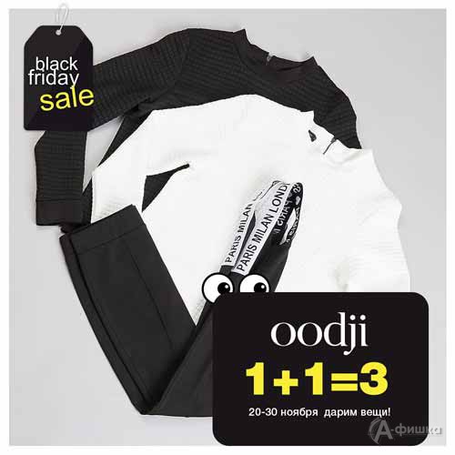 «Чёрная пятница» в магазинах одежды «Oodji» в Белгороде уже началась! С 20 по 30 ноября 2018 г. акция «1+1=3» – купите две любые вещи и получите третью в подарок!