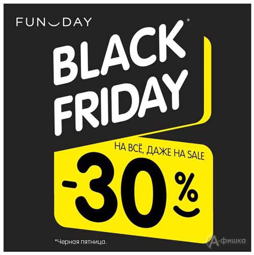 Black Friday в сети магазинов одежды для всей семьи «Funday» в Белгороде – семь чёрных пятниц на неделе! С 20 по 26 ноября 2018 г. скидка 30% на всё, даже на sale!