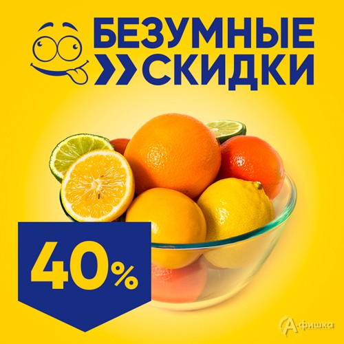 Только 21 ноября 2018 г. в гипермаркетах «Лента» в Белгороде пройдет акция «Безумные скидки» – скидка 40% на все свежие цитрусовые по карте «Лента»!