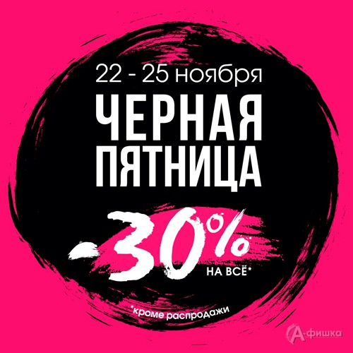 С 22 по 25 ноября 2018 г. в магазине «Modis» проходит «Чёрная пятница» – на всю одежду, обувь, аксессуары для мужчин, женщин и детей скидка 30%!