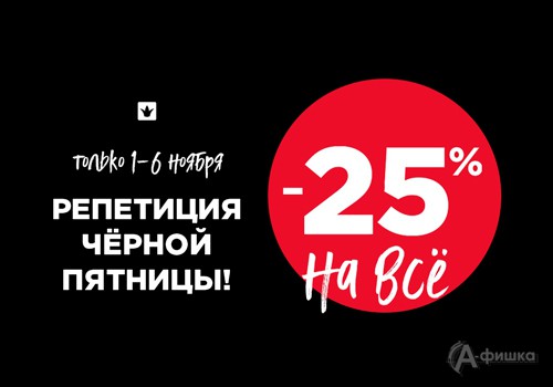 С 1 по 6 ноября 2018 г. в магазине «Снежная Королева» в Белгороде «Репетиция Чёрной пятницы» – скидка 25% на всю верхнюю одежду, в том числе на шубы из меха норки!