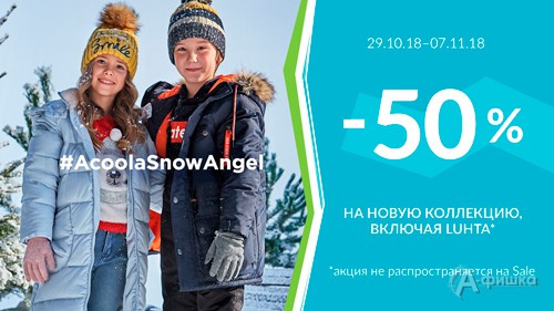 В магазинах детской одежды «Acoola Kids» до 7 ноября 2018 г. цены пополам – скидка 50% на всю новую зимнюю коллекцию для мальчиков и девочек!