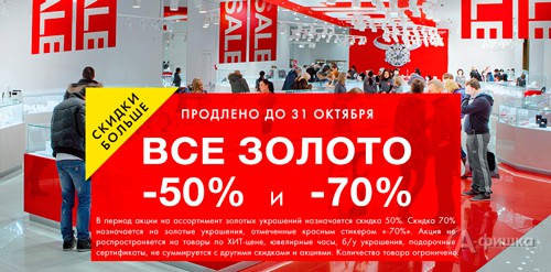 До 31 октября 2018 г. в ювелирных магазинах «Sunlight» в Белгороде проходит акция – на весь ассортимент золотых украшений скидки до 70%!
