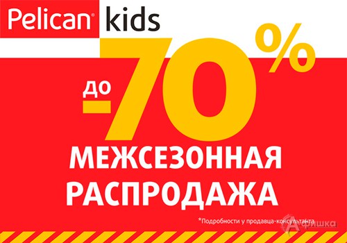 В магазине детской одежды «Pelican kids» в Белгороде с 25 октября по 8 ноября 2018 г. проходит межсезонная распродажа – на сезонный ассортимент скидки до 70%!