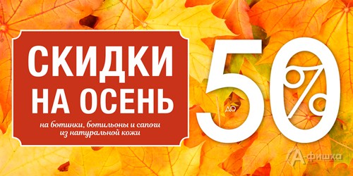 В обувных центрах «Belaton» в Белгороде до 10 ноября 2018 г. проходит акция – на осенние ботинки, ботильоны и сапоги из натуральной кожи действуют скидки до 50%!