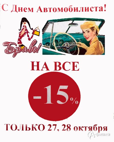 Ко Дню автомобилиста, только 27 и 28 октября 2018 г., в сети магазинов косметики, парфюмерии и бытовой химии «Браво!» в Белгороде акция – на всё скидка 15%!