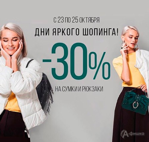 С 23 по 25 октября 2018 г. в бутике аксессуаров «Пан Чемодан» в Белгороде «Дни яркого шопинга» – действует специальная скидка 30% на сумки и рюкзаки избранных брендов!