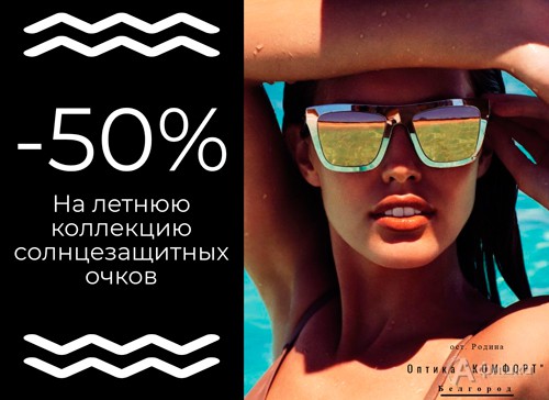 В оптике «Комфорт» в Белгороде проходит ликвидация летней коллекции солнцезащитных очков прошлых сезонов – действует скидка 50%!