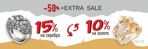 В ювелирном магазине «Наше золото» в Белгороде до 25 октября 2018 г. проходит акция «Extra Sale» – действует дополнительная скидка 10% на золото и 15% на серебро!