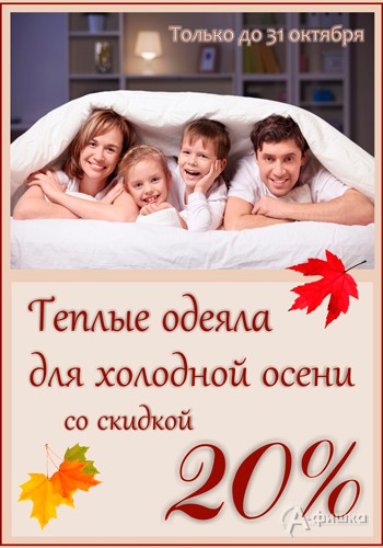 До 31 октября 2018 г. в магазинах подарков и товаров для дома «Коралл» в Белгороде проходит акция «Тёплые одеяла для холодной осени» – скидка 20% на одеяла!