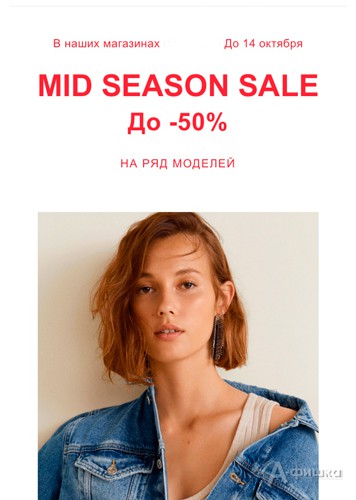 В магазине модной женской одежды «Mango» в Белгороде межсезонная распродажа – до 14 октября 2018 г. на ряд моделей установлены скидки до 50%!