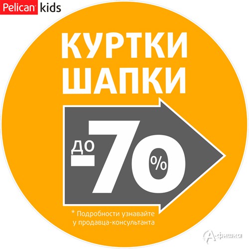 В магазине детской одежды «Pelican kids» в Белгороде с 25 сентября по 9 октября 2018 г. проходит акция – на куртки и шапки скидки до 70%!