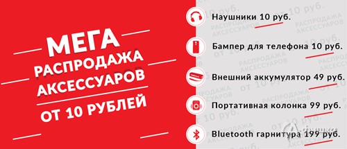 В центре распродаж мобильной электроники «Хорошая связь» проходит мегараспродажа аксессуаров! Успейте купить до 1 октября 2018 г. нужные аксессуары по выгодной цене от 10 рублей!
