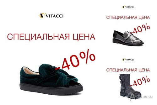 В салоне обуви и аксессуаров «Vitacci» в Белгороде действует специальное предложение – на модели прошлых коллекций установлены скидки до 40%!