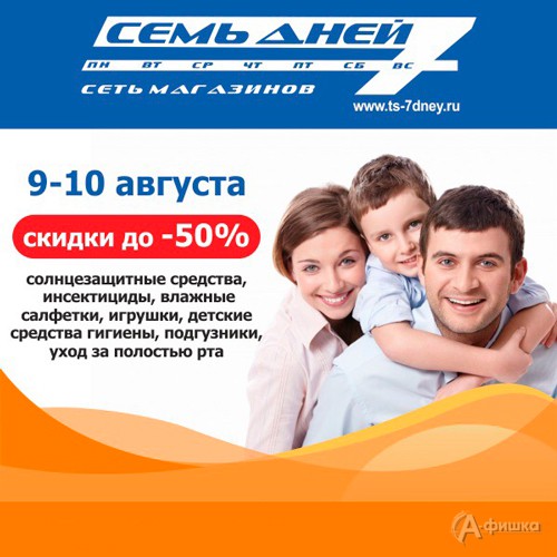 16 и 17 августа 2018 г. в сети магазинов парфюмерии, косметики и бытовой химии «Семь дней» в Белгороде проходит акция – скидки до 50% на декоративную косметику, парфюмерию, уход за лицом и телом, средства для макияжа!