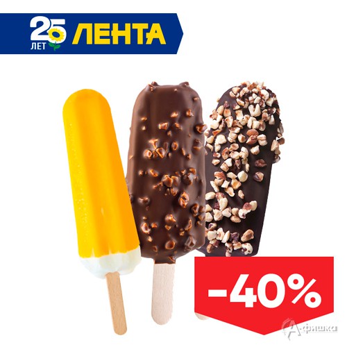 Только 2 августа 2018 г. в гипермаркетах «Лента» в Белгороде пройдет акция – скидка 40% на всё мороженое, на все кетчупы и соусы и скидка 35% на все шоколадные плитки по карте «Лента»!