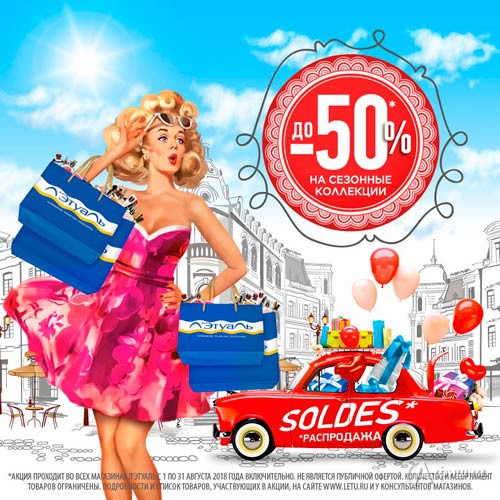 В сети магазинов парфюмерии и косметики «Л’Этуаль» с 1 по 31 августа 2018 г. акция – скидки до 50% на товары из сезонных коллекций!
