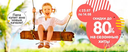До 14 августа 2018 г. в детских магазинах «Кораблик» акция – скидки до 80% на сезонные хиты (товары для активного отдыха, игрушки, детскую одежду и обувь).