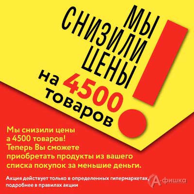 До 30 сентября 2018 г. в гипермаркете «Карусель» в Белгороде проходит акция «Мы снизили цены на 4500 товаров!» – теперь вы сможете приобретать продукты из вашего списка покупок за меньшие деньги!
