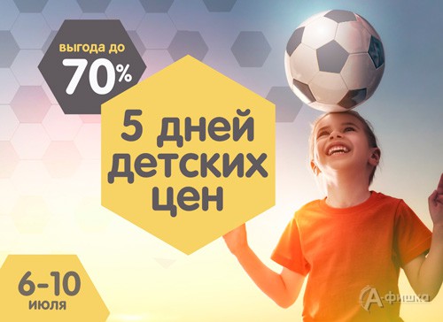С 6 по 10 июля 2018 г. в детских магазинах «Кораблик» акция «Пять дней детских цен» – скидки до 70% на купальники, скидки до 60% на детскую одежду, скидки до 35% на подгузники и другие выгодные предложения!