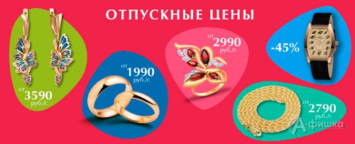С 5 по 9 июля 2018 г. в ювелирном магазине «Кристалл» в Белгороде проходит акция «Отпускные цены» – скидка 45% на изделия из золота!