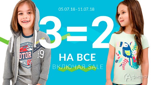 В магазинах детской одежды «Acoola Kids» в Белгороде проходит акция «3=2»! С 5 по 11 июля 2018 г. три вещи по цене двух! В акции участвует весь ассортимент, включая распродажу!