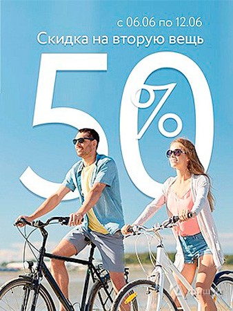 В магазине одежды «Sela» в Белгороде до 12 июня 2018 г. скидка 50% на вторую вещь! Участвуют все товары из ассортимента женской и мужской одежды, включая верхнюю одежду, белье и аксессуары.