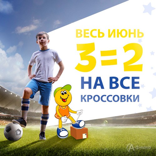 Весь июнь 2018 г. в гипермаркетах детских товаров «Бубль Гум» проходит акция «3=2» на все кроссовки – третья пара в подарок!