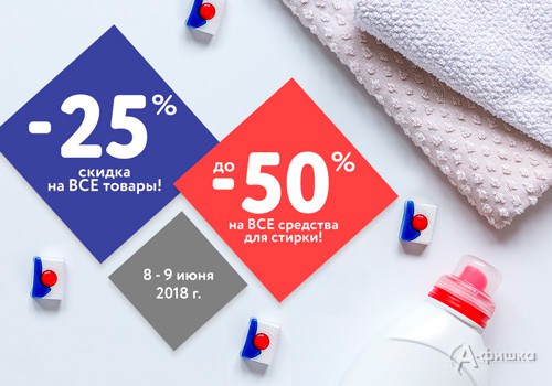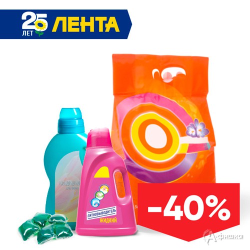 Завтра в гипермаркетах «Лента» в Белгороде акция – 7 июня 2018 г. скидка 40% на стиральные порошки, гели, капсулы для стирки, кондиционеры и отбеливателипо карте «Лента»!