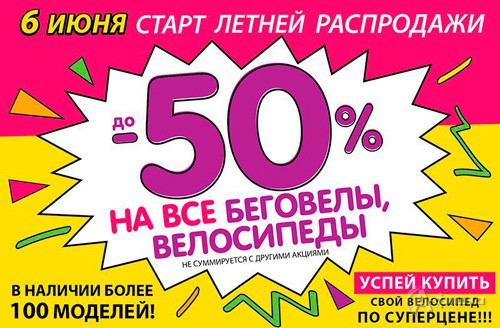 6 июня 2018 г. старт летней распродажи в гипермаркете игрушек «Бегемот» в Белгороде! Скидки до 50% на все велосипеды и беговелы (более 100 моделей)!