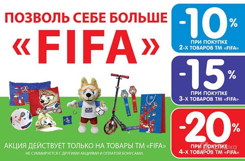 С 19 мая по 15 июля 2018 г. в гипермаркете игрушек «Бегемот» в Белгороде акция для футбольных болельщиков – скидки до 20% на товары с символикой «FIFA»!