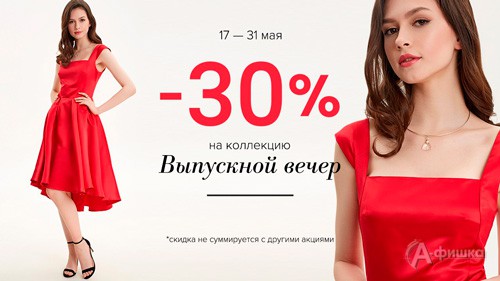 В магазине женской одежды «Concept Сlub» в Белгороде до 31 мая 2018 г. акция на коллекцию «Выпускной вечер» – на платья для летних вечеринок и торжеств скидка 30%!