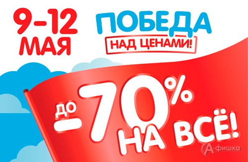 Праздничная акция «Победа над ценами» в гипермаркете игрушек «Бегемот» в Белгороде – с 9 по 12 мая 2018 г. скидки до 70% на всё!